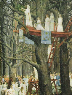 Cette forêt était étendue sur les parties orientales et méridionales de la commune de Sailly le Sec. Elle formait un triangle : Flibeaucourt Hautvillers Étymologiquement «Cantatre » viendrait du latin « campus alter » qui signifie « champ noir ». On peut raisonnablement penser que cette forêt était déjà présente à la période gauloise, en effet, plusieurs tombes y ont été retrouvées (des tombelles similaires à celles retrouvées dans l'arrondissement d'Abbeville) ainsi que des fosses. En outre, des sortes de jattes profondes ont été mises au jour. D'après les spécialistes, il y aurait là traces d'habitations gauloises (tuguria). A titre indicatif, il faut savoir qu'on retrouve ce même genre de trous dans le très important site archéologique de Bibracte (Bourgogne). Une autre origine étymologique est esquissée, mais qui paraît cette fois beaucoup moins plausible. En effet, « Des druides auraient établi leur temple dans cette forêt et y auraient pratiqué leurs sacrifices et chanté les louanges de leurs dieux ». De là serait venu le nom de Cantatre (de « cantare » en latin chanter ». Il s'agit là pour le moins d'une interprétation tout à fait erronée des pratiques druidiques de l'époque gauloise. Car s'il est possible que des druides fussent présent dans la forêt pour y trouver leurs matières premières ou prodiguer leur enseignement, il est par contre tout à fait improbable qu'ils aient pu y établir un lieu de culte et encore moins y pratiquer quelconques rituels sacrificiels sanglants. Il s'agit là des restes d'une imagerie romantique des pratiques druidiques, largement développées par les intellectuels du XIXe siècle. Donc, au risque de décevoir les amateurs de merveilleux et de fantastique, la forêt de Cantatre ne sera pas une seconde Brocéliande... Les druides cueillant le gui (1900) Henri Paul Motte Si on avance un peu plus dans le temps, au Moyen-Age, la forêt de Cantatre apparait dans une Charte pour des défrichements. Le Comte de Ponthieu ordonne ainsi le défrichement de 50 verges de forêt. De plus, cette dernière fut également exploitée par les religieux de Saint Pierre et les frères du Val de Buigny. Au XIIIe siècle, on apprend que la forêt nourrissait une quantité énorme de cerfs, mais donnait également lieu, dans certains cas, à des procès verbaux, lors de conflits de chasse notamment. A l'époque moderne, c'est par l'entremise d'un haut personnage, Louis-Wulfran de Vismes, qu'on retrouve mention de la Forêt. Ainsi, au XVIIIe, le Noble Homme Messire Louis-Wulfran de Vismes (1682-1767), échevin d'Abbeville, Maître notaire royal à Abbeville, confirmé en sa noblesse en 1742, par jugement d'Armes, marchand en gros de soiries , fut non seulement receveur général pour Marie d'Orléans, duchesse de Nemours, de la chatellenie de Noyelles-sur-mer, mais aussi receveur de la forêt de Cantatre puis du prieuré de St Pierre, de la terre et seigneurie de Domvast vers 1677, mais également adjudicataire des bois de la forêt de Cressy et receveur général du duché d'Aumale. Enfin, l'époque contemporaine, sonne le glas de cette forêt qui avait pourtant réussie à traverser les Ages. En effet, en 1830, le nouveau gouvernement décrète que tous les biens que possédait l'ancienne famille royale de Charles X seraient aliénés, la forêt de Cantatre en faisait partie. Elle fut donc vendue. Se fut alors la l'escalade entre spéculateurs et avides acquéreurs qui obtinrent progressivement l'autorisation de défricher. Malgré l'intervention du garde général des forêts de l'époque, Mr Bouteiller, les acquéreurs l'emportèrent. Se fut la fin de la forêt de Cantatre et aussi des ressources qu'elle apportait aux indigents de la localité. Seulement deux petites parcelles auraient échappées à l'abattage :